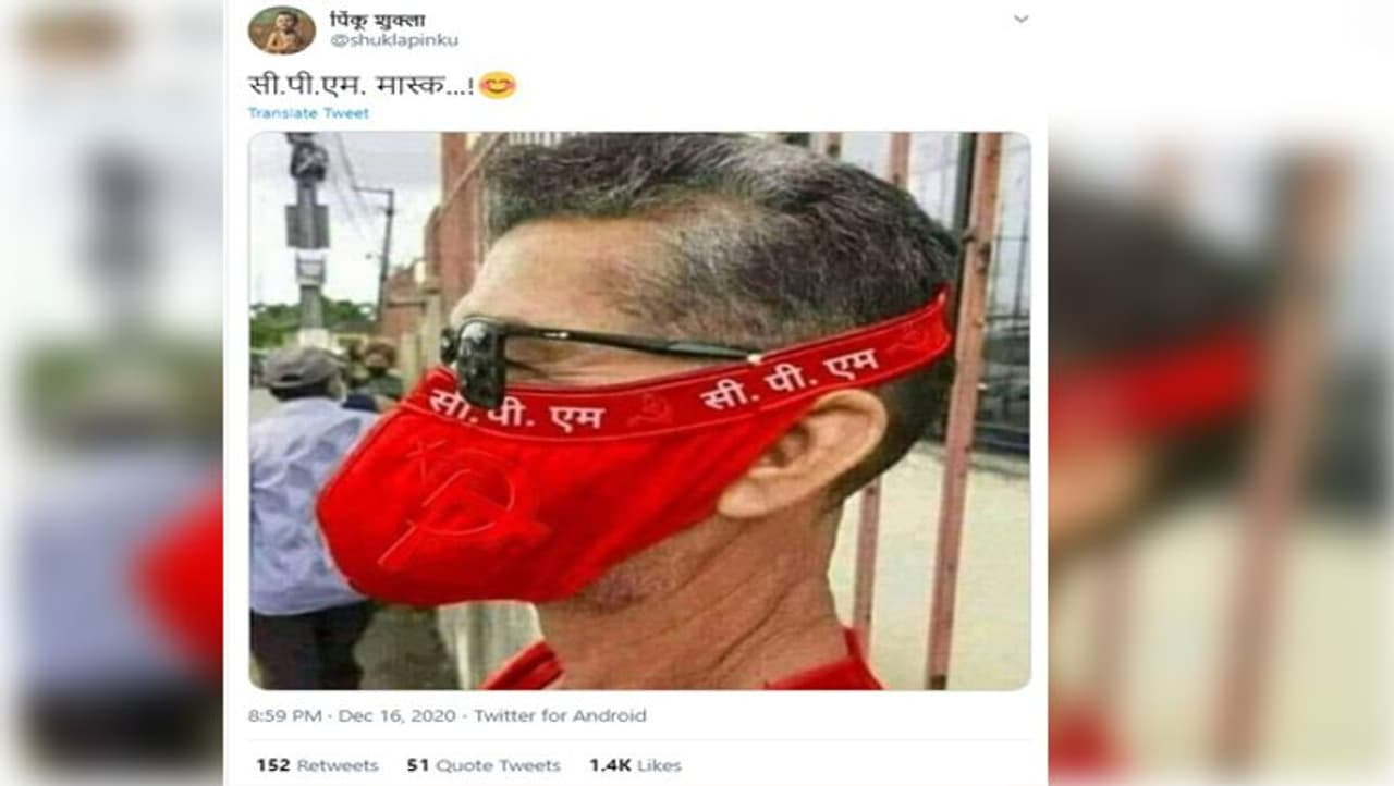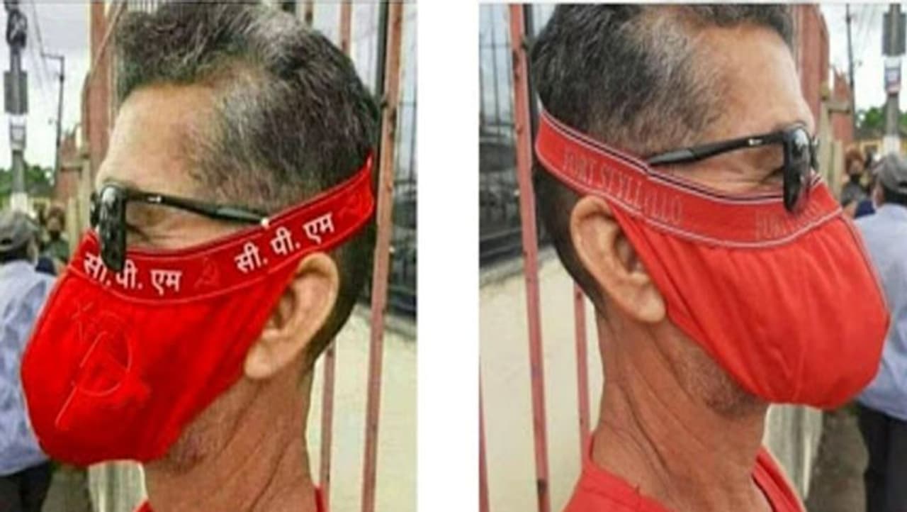 सोशल मीडिया पर वायरल हो रही इस तस्वीर को देखकर दावा किया जा रहा है कि ये आदमी जिसने अंडरवियर का ये मास्क पहना हुआ है, ये सीपीएम पार्टी का कार्यकर्ता है और उसका प्रचार इस तरह से कर रहा है। लोग इस इस तस्वीर को सच समझकर खूब मजाक उड़ा रहे हैं। फोटो पर अबतक हजारों लोग कमेंट कर चुके हैं। कोई इसे कम्युनिस्टों का मास्क कह रहा है, तो कोई इसपर जमकर मीम्स बना रहा है।