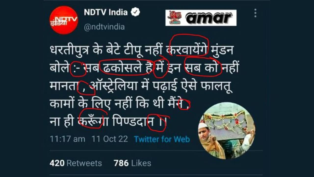 फैक्ट चेकः धरतीपुत्र के बेटे टीपू नहीं करवाएंगे मुंडन, बोले- सब ढकोसला है, मैं इन सबको नहीं मानता। ऑस्ट्रेलिया में पढ़ाई ऐसे फालतू कामों के लिए नहीं की थी मैंने, ना ही करूंगा पिंडदान...