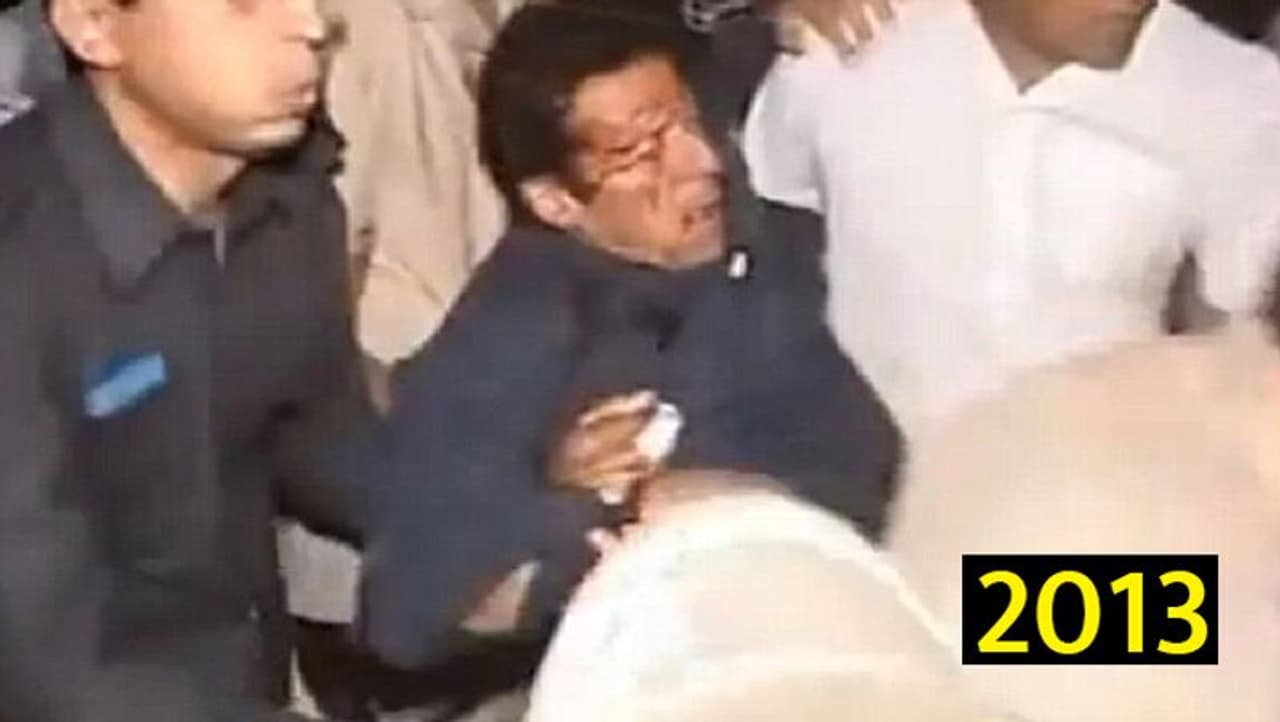 03 नवंबर 2022 को पाकिस्तान के पूर्व प्रधानमंत्री इमरान खान पर फायरिंग हुई। इस हमले के बाद सोशल मीडिया पर इमरान खान की अलग-अलग पुरानी तस्वीर वायरल हो रही है, किसी में उनके चेहरे पर खून दिख रहा है तो किसी तस्वीर में वह एक जगह दोनों हाथ फैलाए हुए लेटे हुए हैं।