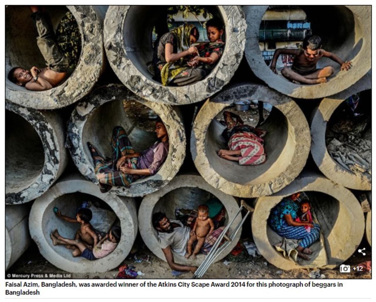 इस तस्वीर के साथ डिस्क्रिप्शन लिखा था “Faisal Azim, Bangladesh, was awarded winner of the Atkins City Scape Award 2014 for this photograph of beggars in Bangladesh”। इसका हिंदी अनुवाद होता है “बांग्लादेश में भिखारियों की इस तस्वीर के लिए बांग्लादेश के फैजल अजीम को एटकिन्स सिटी स्केप अवॉर्ड 2014 से सम्मानित किया गया।”