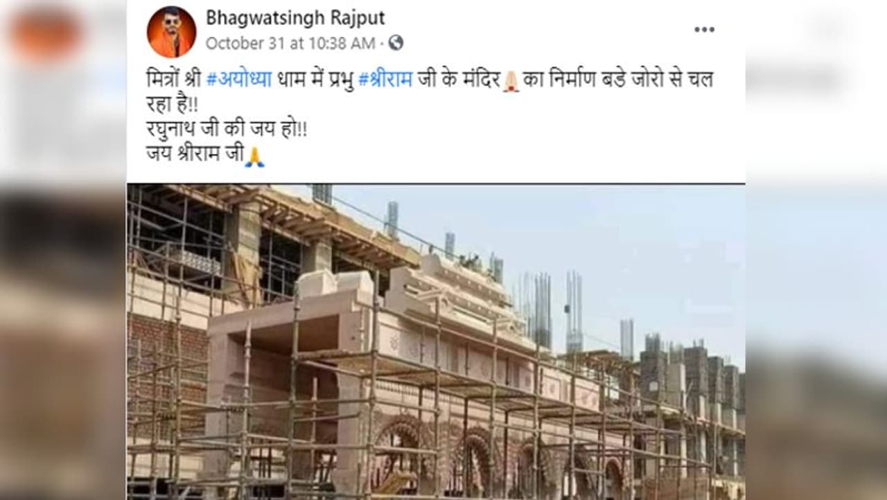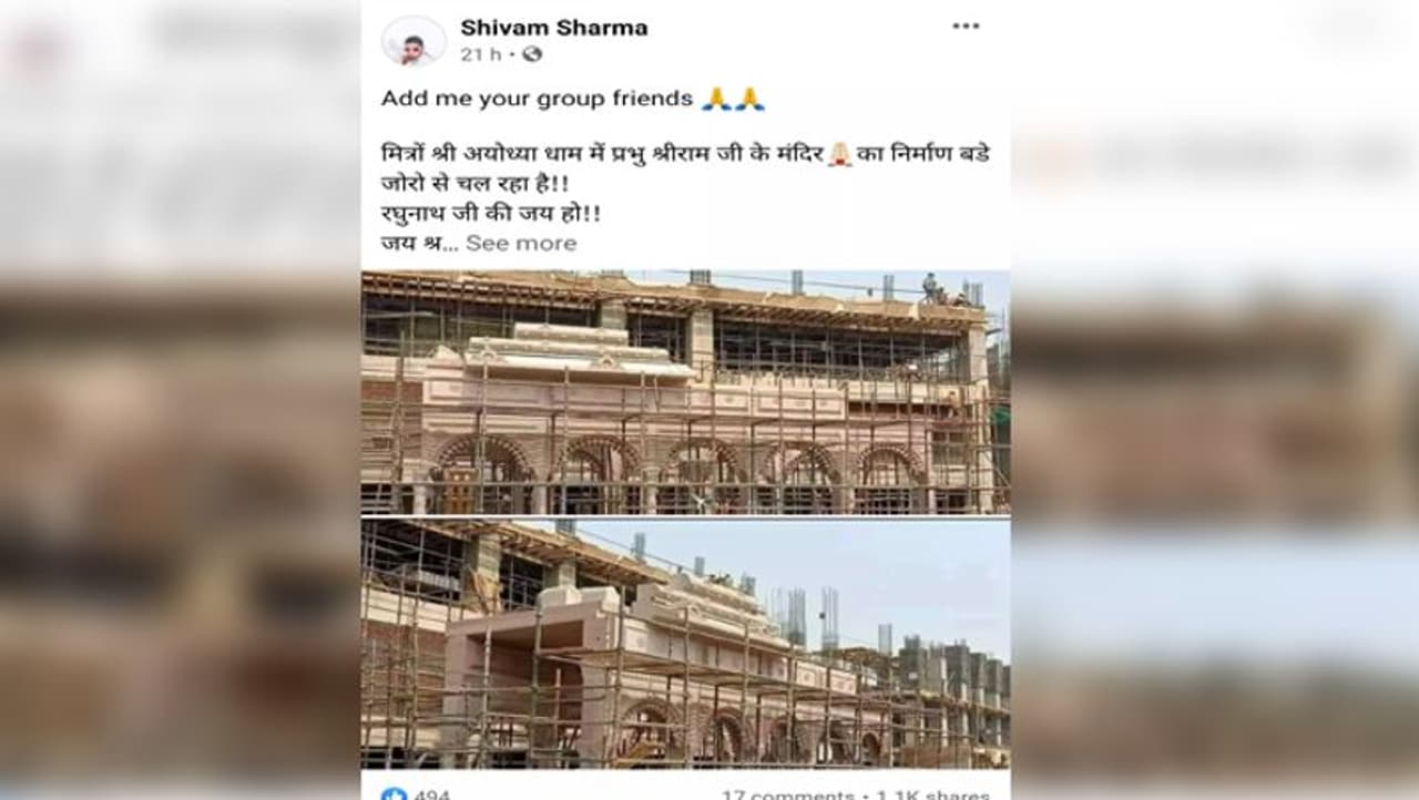 फेसबुक पर इन तस्वीरों को शेयर करते हुए कई लोगों ने दावा किया कि ये अयोध्या में बन रहे भव्य राम मंदिर की तस्वीर है। एक यूजर ने फोटो को शेयर करते हुए लिखा कि, मित्रों श्री अयोध्या धाम में प्रभु श्रीराम जी के मंदिर का निर्माण बड़े जोरों से चल रहा है। रघुनाथ जी की जय हो।