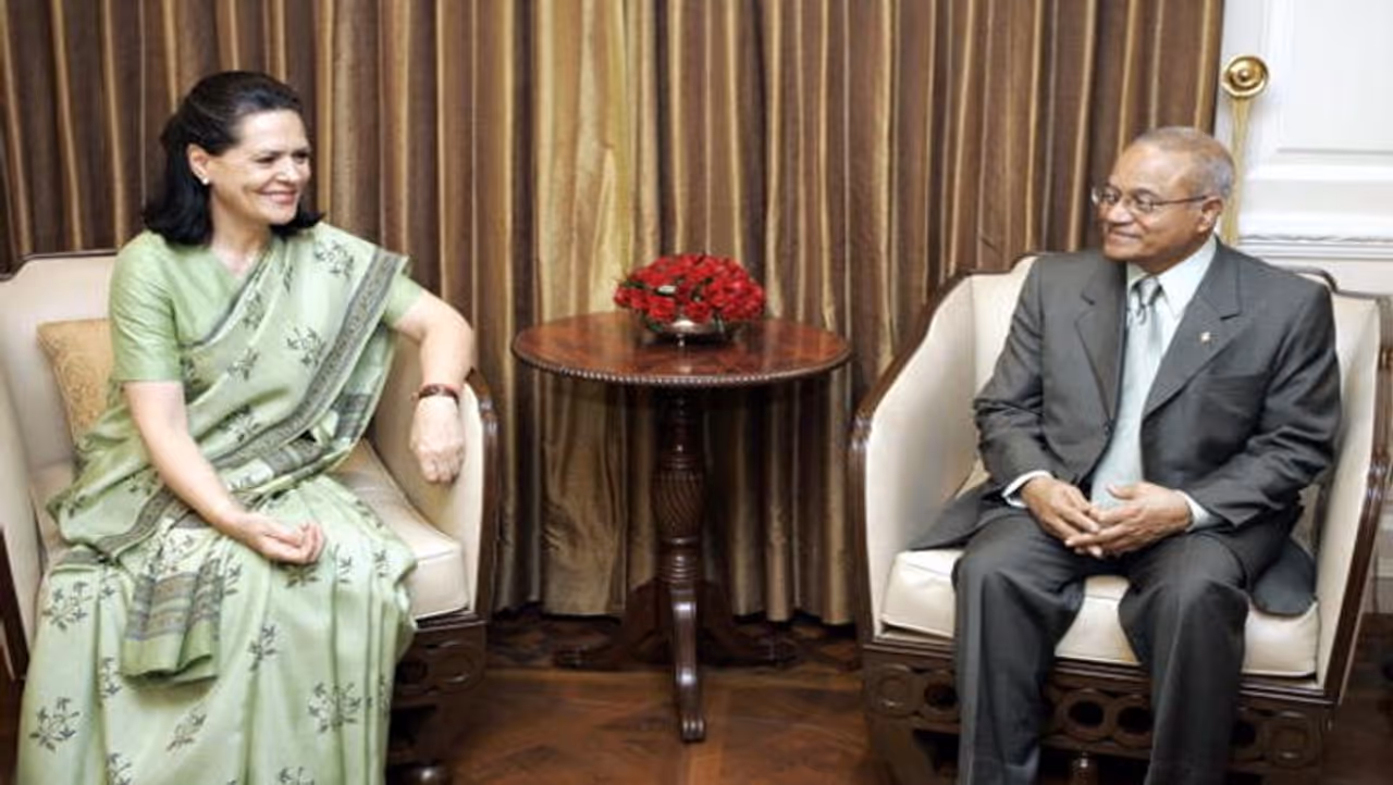 मालदीव के पूर्व राष्ट्रपति मौमून अब्दुल गयूम की गोद में बैठी सोनिया गांधी की एक तस्वीर सोशल मीडिया पर खूब वायरल हो रही है, जिसपर कैप्शन दिया गया है कि यह सोनिया सेना की नेता है जो पैसे के लिए कुछ भी कर सकती है। इसके पीछे सबसे भ्रष्ट पार्टी है।