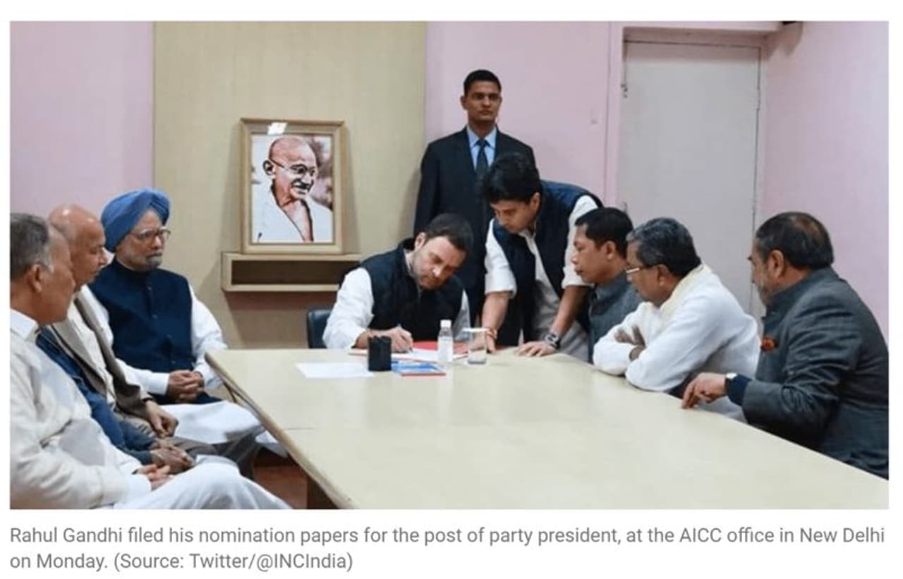 राहुल गांधी की ये तस्वीर कई न्यूज़ रिपोर्ट्स में पब्लिश हुई थी। इन रिपोर्ट्स के मुताबिक, राहुल गांधी कांग्रेस अध्यक्ष के पद के लिए नामांकन भर रहे थे। 4 दिसम्बर, 2017 को पब्लिश हुई द इंडियन एक्सप्रेस की रिपोर्ट में उनके नामांकन पर पार्टी सदस्यों और समर्थकों की प्रतिक्रिया के बारे में बताया गया।