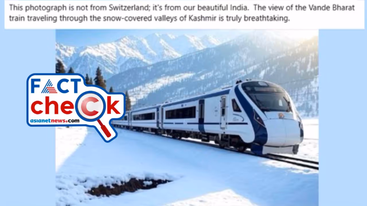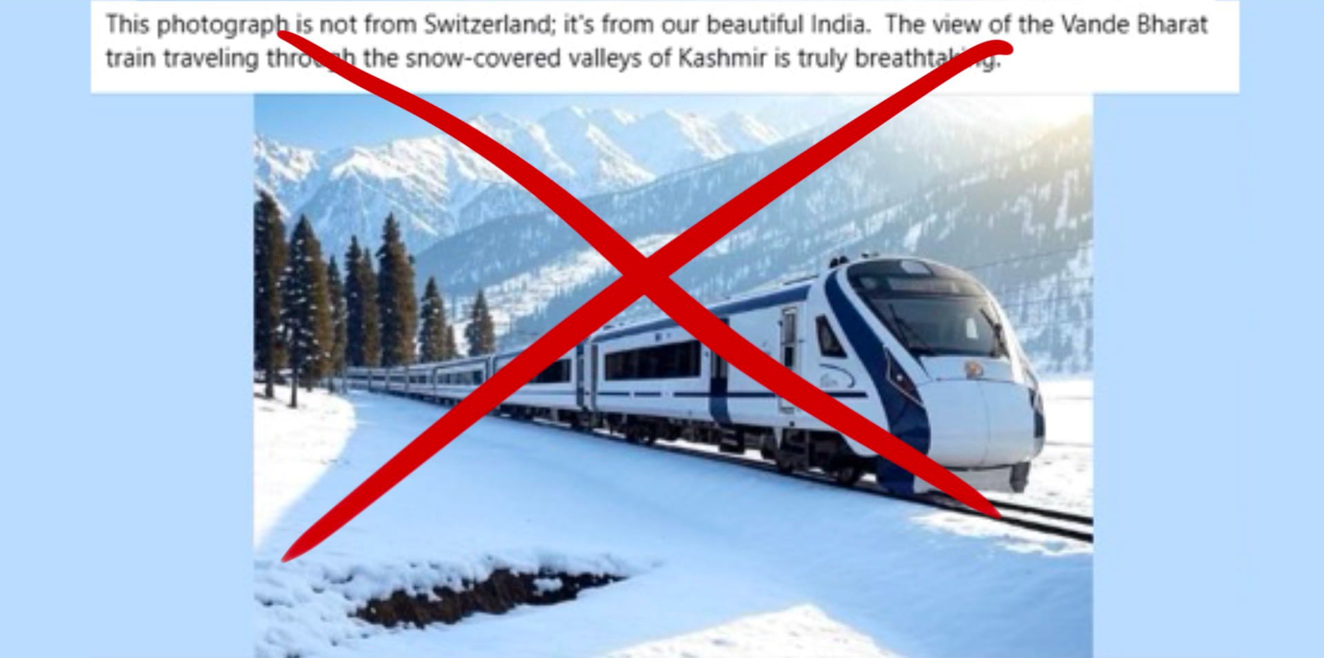 बर्फीले पहाड़ों के बीच से गुजरती ट्रेन की तस्वीर के साथ 11 जनवरी 2025 को फेसबुक पर एक पोस्ट दिखाई दी, जिसमें लिखा था, 'यह तस्वीर स्विट्जरलैंड की नहीं है। यह खूबसूरत भारत की तस्वीर है। कश्मीर की बर्फीली वादियों में वंदे भारत का यह नज़ारा वाकई अद्भुत है।'