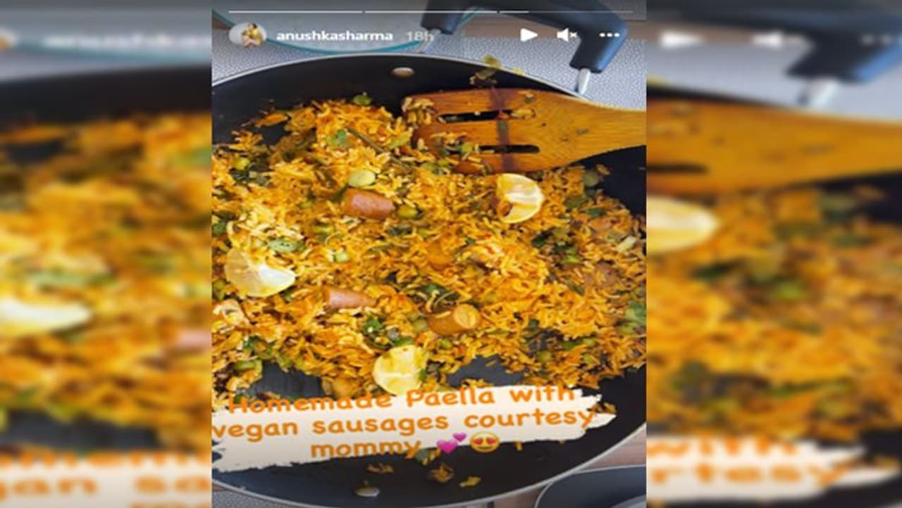 फूड डेस्क : बॉलीवुड एक्ट्रेस और भारतीय क्रिकेट टीम के कप्तान विराट कोहली की वाइफ अनुष्का शर्मा (Anushka Sharma) इन दिनों मुंबई में अपने परिवार के साथ टाइम स्पेंड कर रही हैं। इस बीच शूटिंग से वक्त निकालकर वह अपनी मां के हाथ का खाना खाने पहुंची और उंगलियां चाट-चाटकर मां के हाथ की बनाई स्पेनिश डिश (spanish dish) पेला (Paella) का मजा लिया। हाल ही में अनुष्का शर्मा ने अपनी इंस्टा स्टोरी पर इस डिश की फोटो शेयर की और बताया कि उनकी मां ने उनके लिए यह स्पेशल डिश बनाई वह भी वेजिटेरियन तड़के के साथ। बता दें कि, अनुष्का शर्मा और विराट कोहली कुछ सालों से वीगन बन गए हैं। ऐसे में स्पेन की मशहूर नॉन वेजिटेरियन डिश को अनुष्का की मां ने इंडियन टच दिया। आइए आपको दिखाते अनुष्का शर्मा का यह पोस्ट...