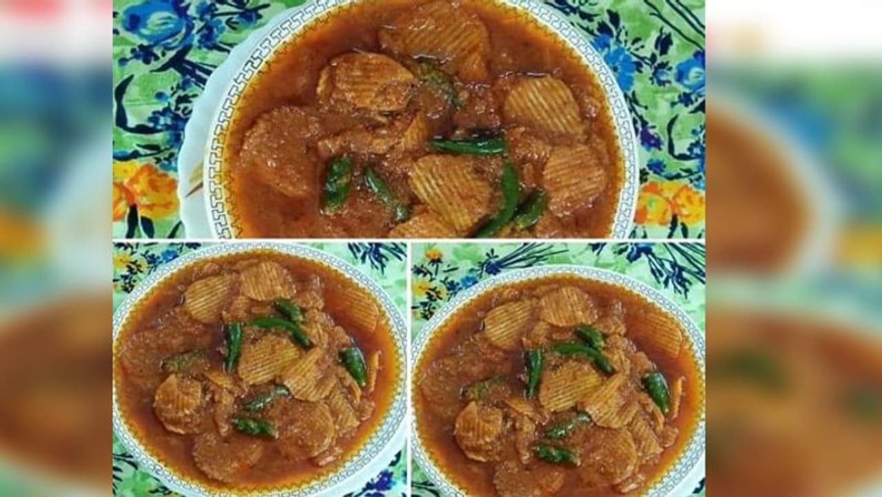 एक फूड ब्लॉगर ने 'आलू के चिप्स करी' बनाकर फेसबुक पर शेयर की है। कोलकाता फूड ट्रॉटर्स नाम के एक फेसबुक ग्रुप में पोस्ट किए गए इस फोटो को देख कर लग रहा है, कि प्याज-टमाटर के ग्रेवी के बनाकर इसमें चिप्स डाले गए है। वहीं, गार्निशिंग के लिए साबुत हरी मिर्च का इस्तेमाल किया गया है। हालांकि, वायरल होने के बाद इस पोस्ट को बाद में हटा दिया गया है।