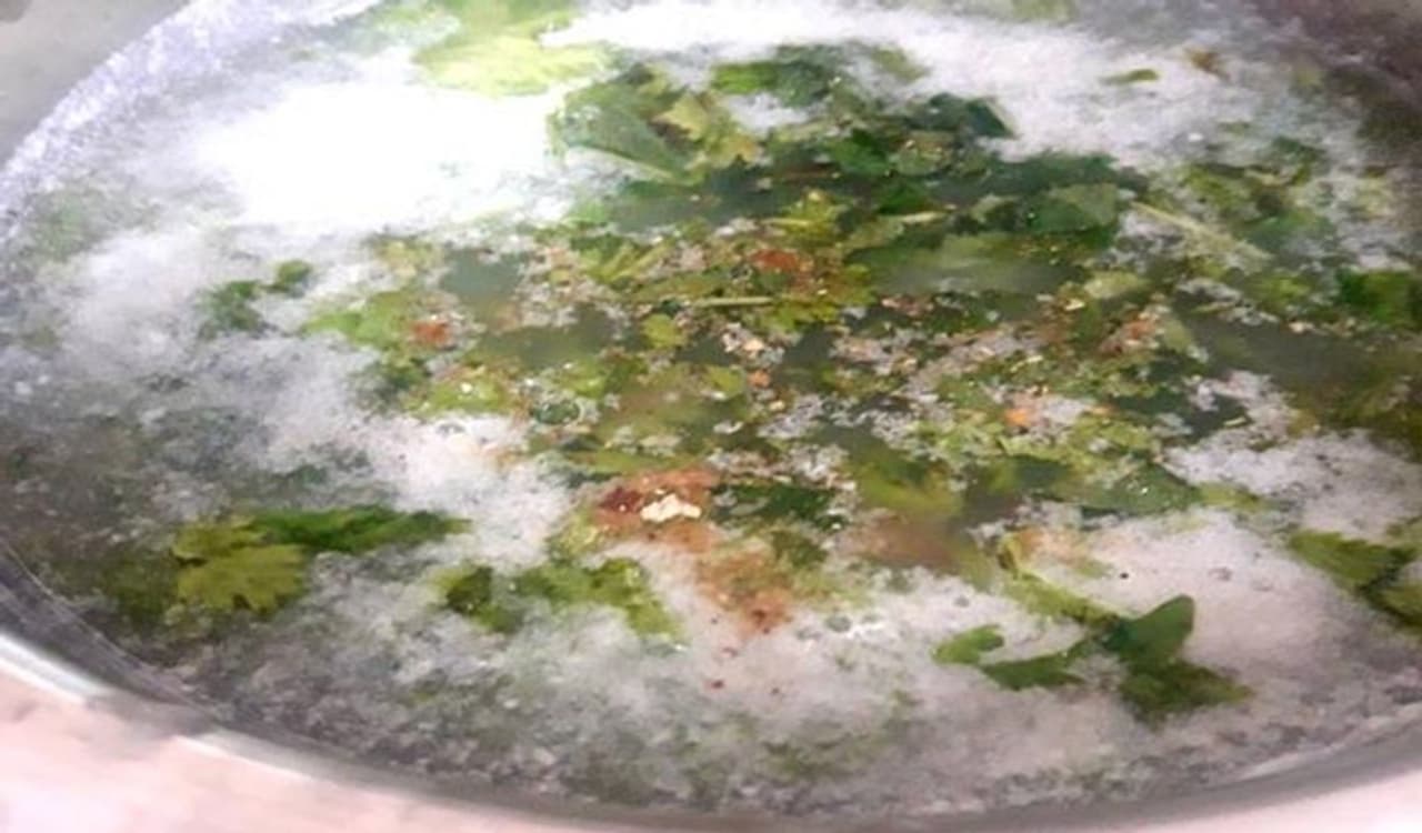 -दूसरी तरफ धनिया पत्ती, पुदीना को धो कर काट लें। आप चाहें तो इसमें मिर्च डालें या चाहें तो इसे अवॉयड भी कर सकते हैं। अब इसे पानी में मिलकर इसे ढंक कर 15 से 20 मिनट के लिए रख दें।