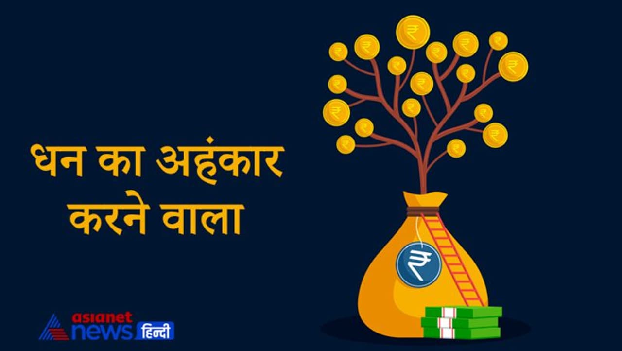 व्यक्ति को कभी भी धन आने पर अंहकार नहीं करना चाहिए। अहंकार की भावना से व्यक्ति की बुद्धि भ्रष्ट हो जाती है और व्यक्ति अंहकार में आकर व्यक्ति दूसरों का सम्मान नहीं करता है धन का अहंकार करने वाला व्यक्ति से मां लक्ष्मी नाराज हो जाती हैं और जल्दी ही ऐसे लोगों का धन नष्ट हो जाता है। व्यक्ति अपने जीवन में परेशानियों का सामना करता है।