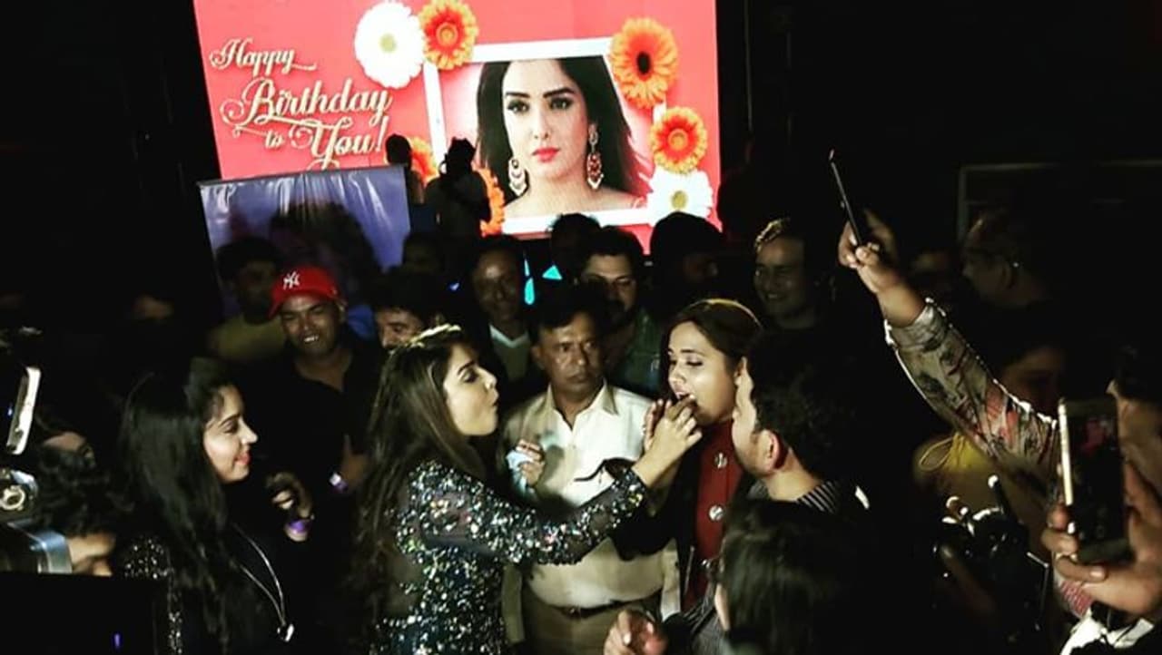 आम्रपाली, काजल राघवानी और शुभि शर्मा के अलावा इस सेलिब्रेशन में चारों तरफ फैंस की भीड़ दिखाई दे रही है।