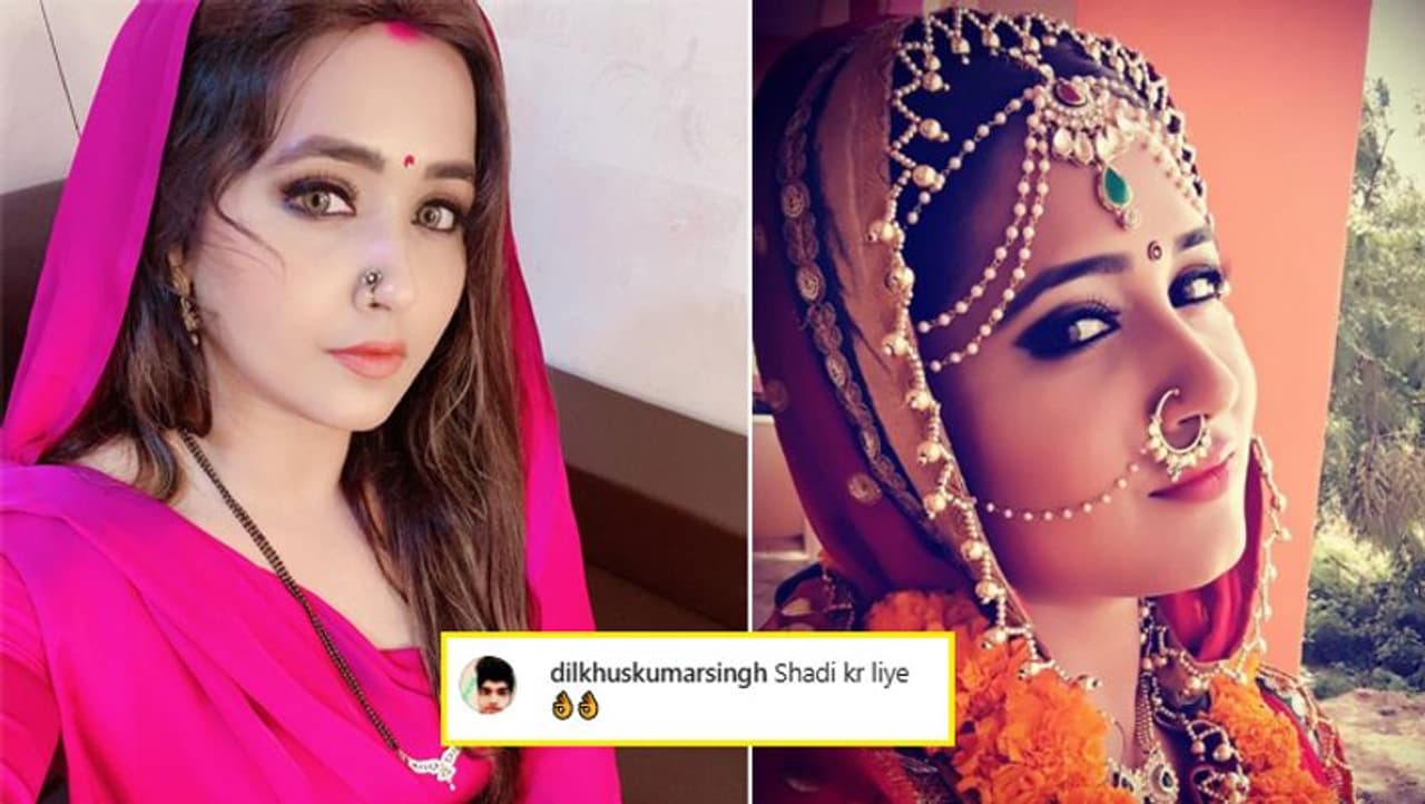 काजल राघवानी को वैवाहिक महिला के रूप में तैयार देख फैंस उनसे पूछ रहे हैं कि 'क्या आपने शादी कर ली है?' इस फोटो को खुद काजल राघवानी ने अपने इंस्टाग्राम पर शेयर की है। इसे शेयर करने के साथ ही उन्होंने कैप्शन में दिल का निशान बनाया है।
