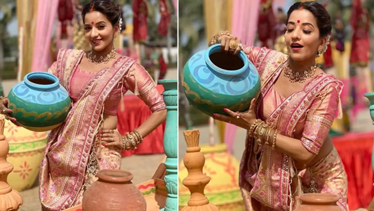 बालों में गजरा, मांग में सिंदूर और बंगाली स्टाइल में साड़ी पहन सज-धजकर गांव की गोरी बनीं मोनालिसा