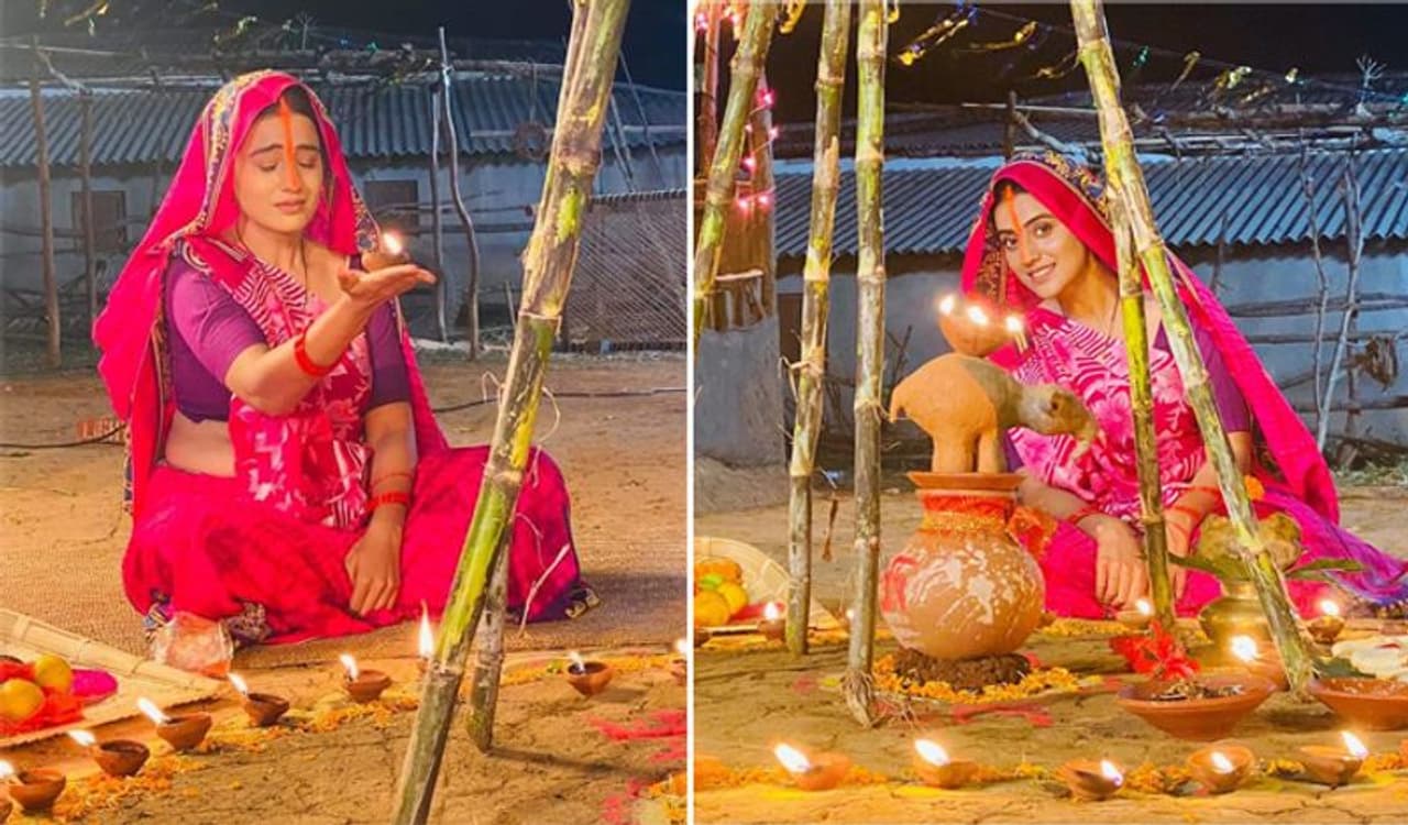 - आंखों में आंसू और हाथेली पर दिया रख छठी मइया को मनाती दिखीं अक्षरा सिंह, देखें PHOTOS
