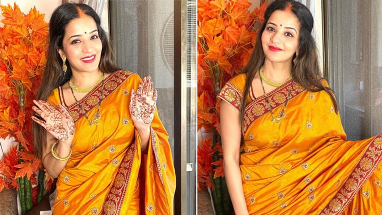 - मांग में सिंदूर, हाथ में मेहंदी, गले में मंगलसूत्र, गणेश चतुर्थी पर मोनालिसा का दिखा ट्रैडिशनल लुक