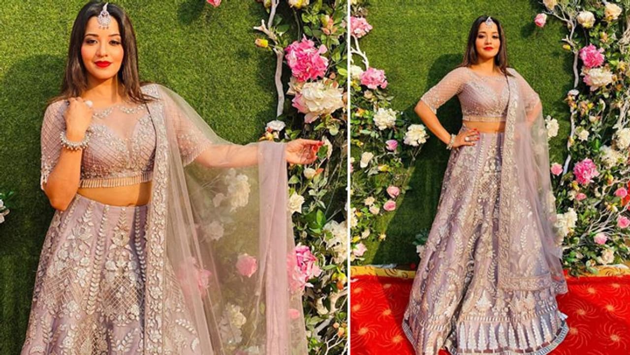 मोनालिसा ने इस दौरान मांग टीका, रेड लिपस्टिक, खुले बाल और परपल कलर का लहंगा पहना हुआ था। पार्टी में फैमिली फंक्शन में मोनालिसा ने ही महफिल ही लूट ली।