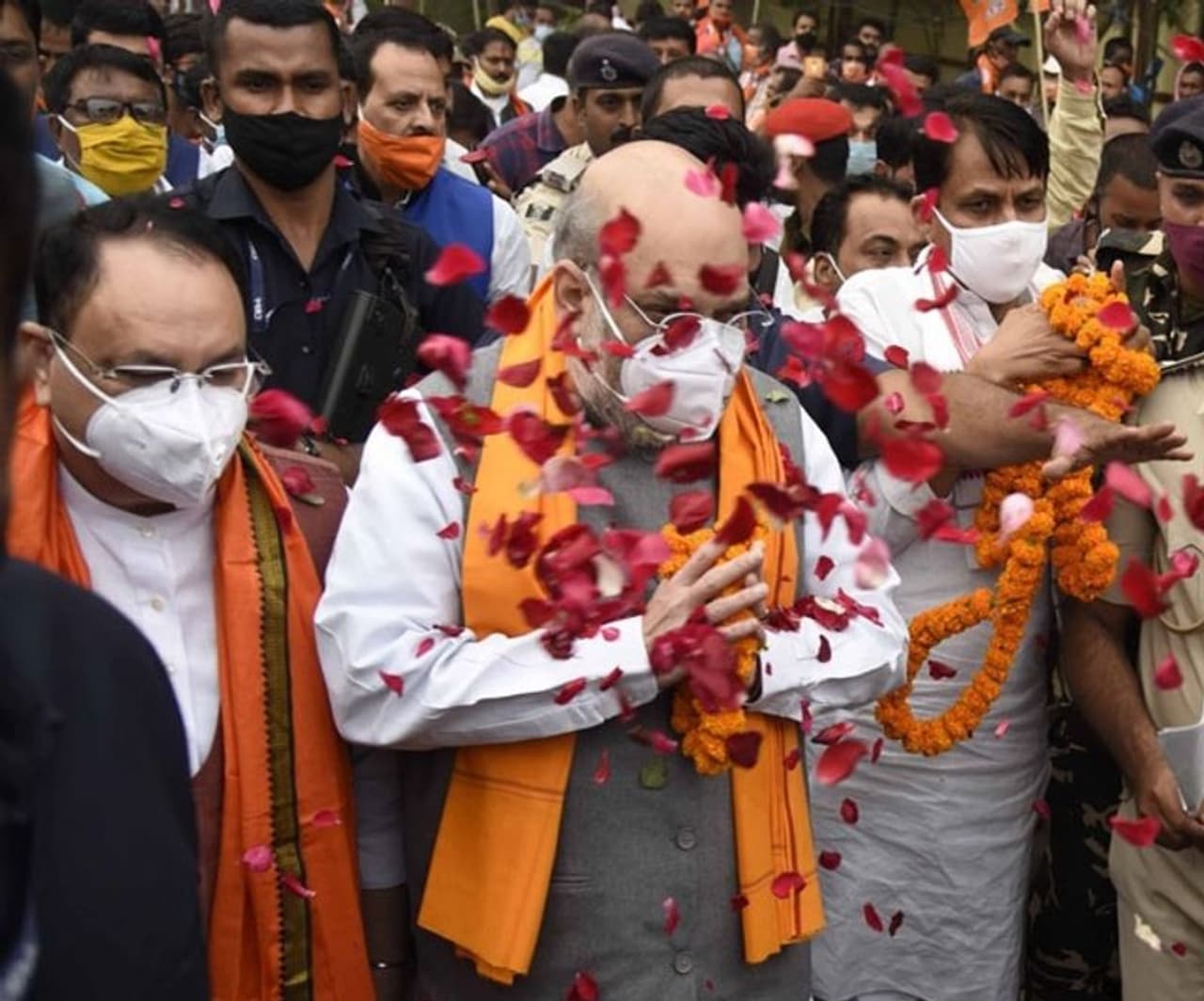 एनडीए की फिर से बिहार में सरकार बनने पर पहली बार आए केंद्रीय गृह मंत्री अमित शाह और बीजेपी अध्यक्ष जेपी नड्डा का गुलाब के फूल से कुछ इस तरह स्वागत किया गया।