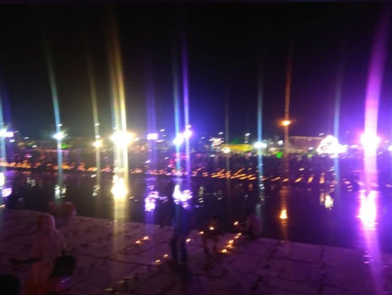 अयोध्या के सरयू नदी के तट पर कुछ इस तरह जलाए गए दीये।