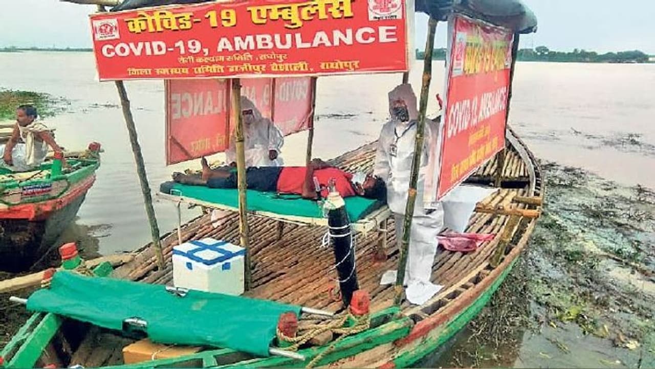 पटना (Bihar) । बिहार में बाढ़ और कोरोना का कहर कम होता नहीं होता दिख रहा है। इस समय 16 जिले बाढ़ से प्रभावित हैं, जबकि कोरोना का संक्रमण समूचे प्रदेश में है। इस दोहरी चुनौती के बीच मरीजों को नजदीकी अस्पताल पहुंचाने के लिए वैशाली प्रशासन ने राघोपुर में नाव एंबुलेंस की व्यवस्था शुरू की है। इस नाव एंबुलेंस पर पीपीई किट में जांच दल के साथ एक डॉक्टर, एक असिस्टेंट के अलावा मेडिकल टीम रहेगी। वहीं, बाढ़ प्रभावित जिलों में कई ऐसी तस्वीरें सामने आई हैं, जिसे देखने के बाद हर कोई कह रहा है वहां तो जिंदगी नर्क बन गई है।