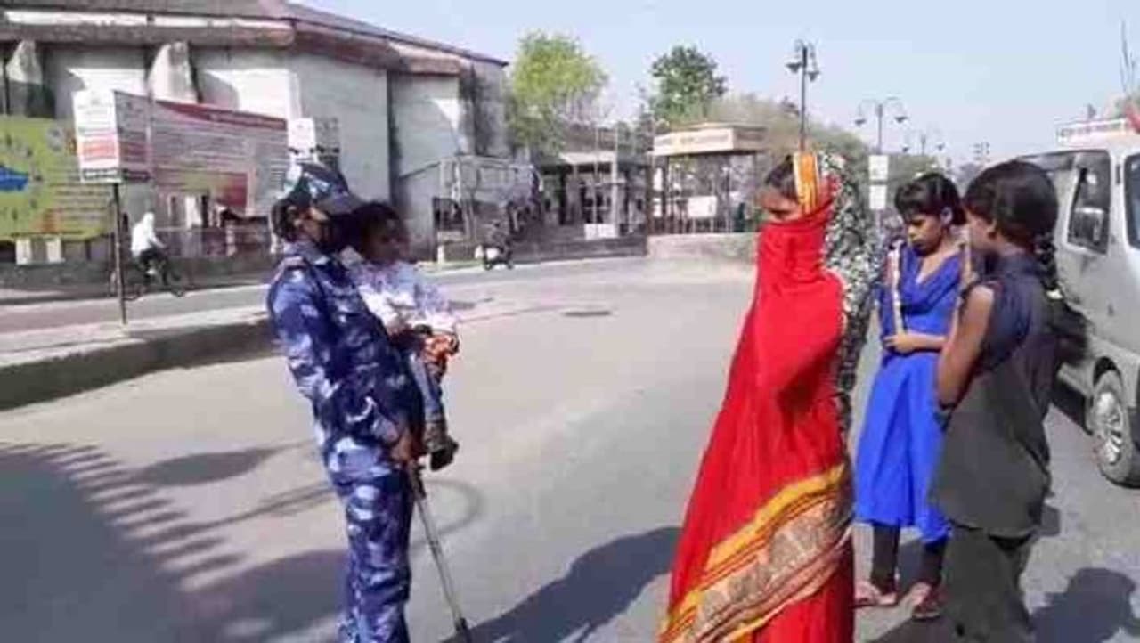 आंचल में ममता सिर पर ड्यूटी का जुनून, चर्चा में है लेडी कांस्टेबल की ये तस्वीर
