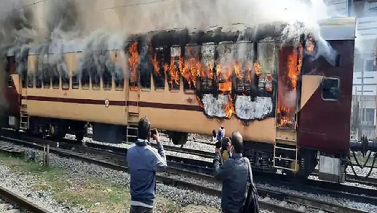 बिहार में हिंसक हुआ छात्रों का प्रदर्शन: चलती ट्रेनों में लगाई आग, तस्वीरें में देखिए धू-धू कर जल गईं बोगियां