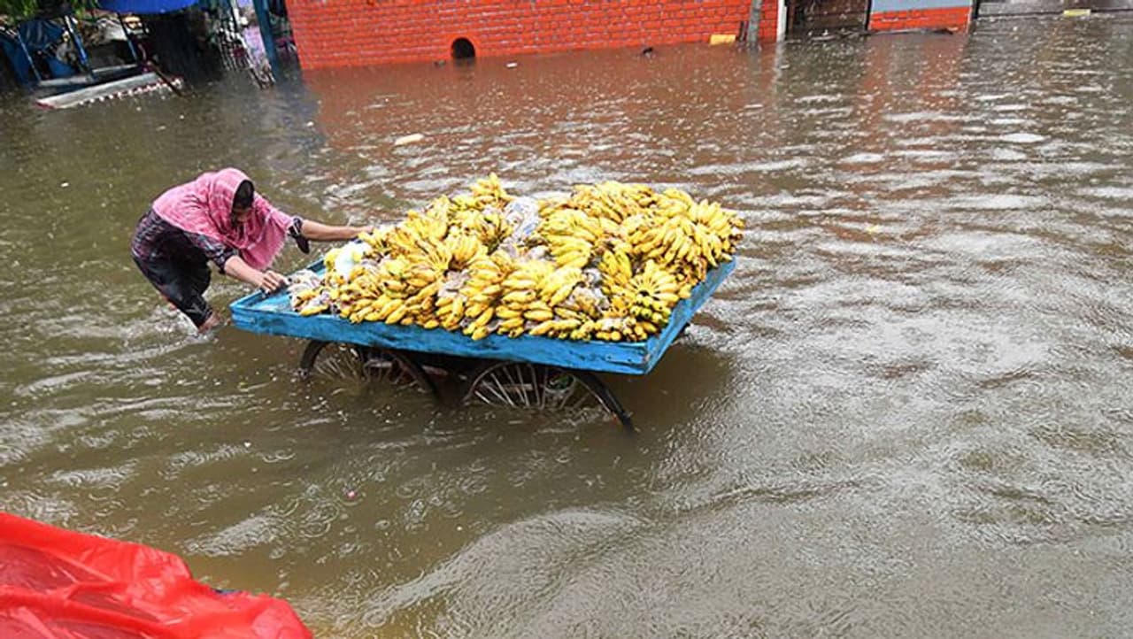 यह तस्वीर भावुक करने वाली है। शहर पानी में डूबा हुआ है, लेकिन एक ठेलेवाले को रोजी-रोटी की तलाश में घर से बाहर निकलना पड़ा। पानी में ठेला आगे धकेलना बेहद मुश्किल काम था, लेकिन उसने हिम्मत नहीं हारी। अगर वो घर से बाहर नहीं निकलता, तो बच्चे भूखे रह जाते।