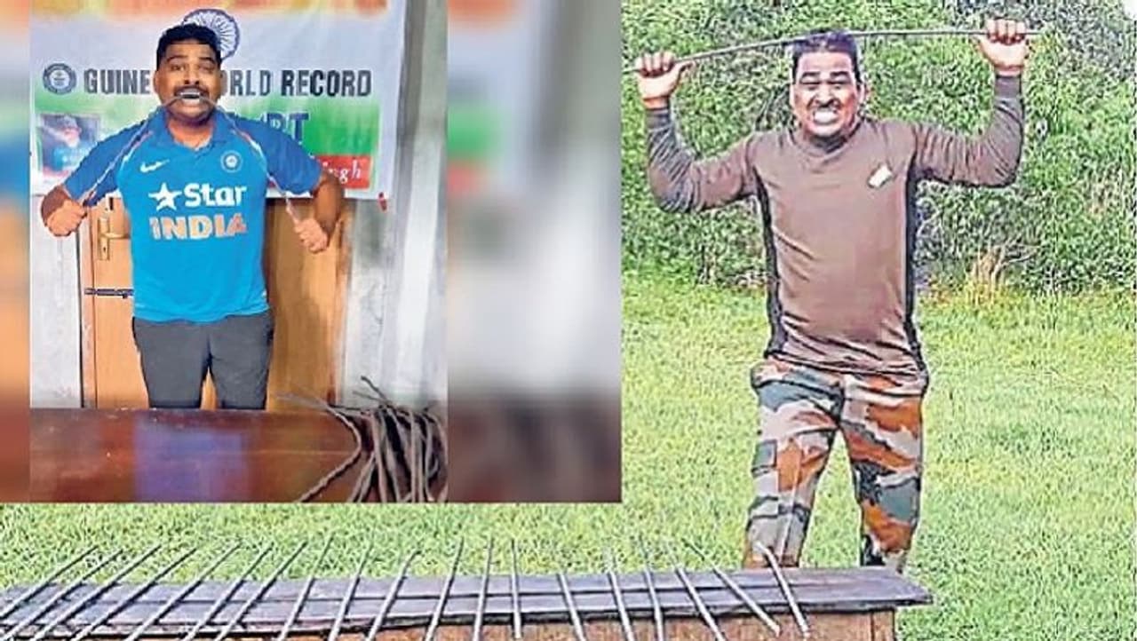 धर्मेंद्र ने दांतों से 1 मिनट में लोहे के 15 रॉड को मोड़ा, 35 दिन में दूसरी बार गिनीज बुक में दर्ज कराया नाम