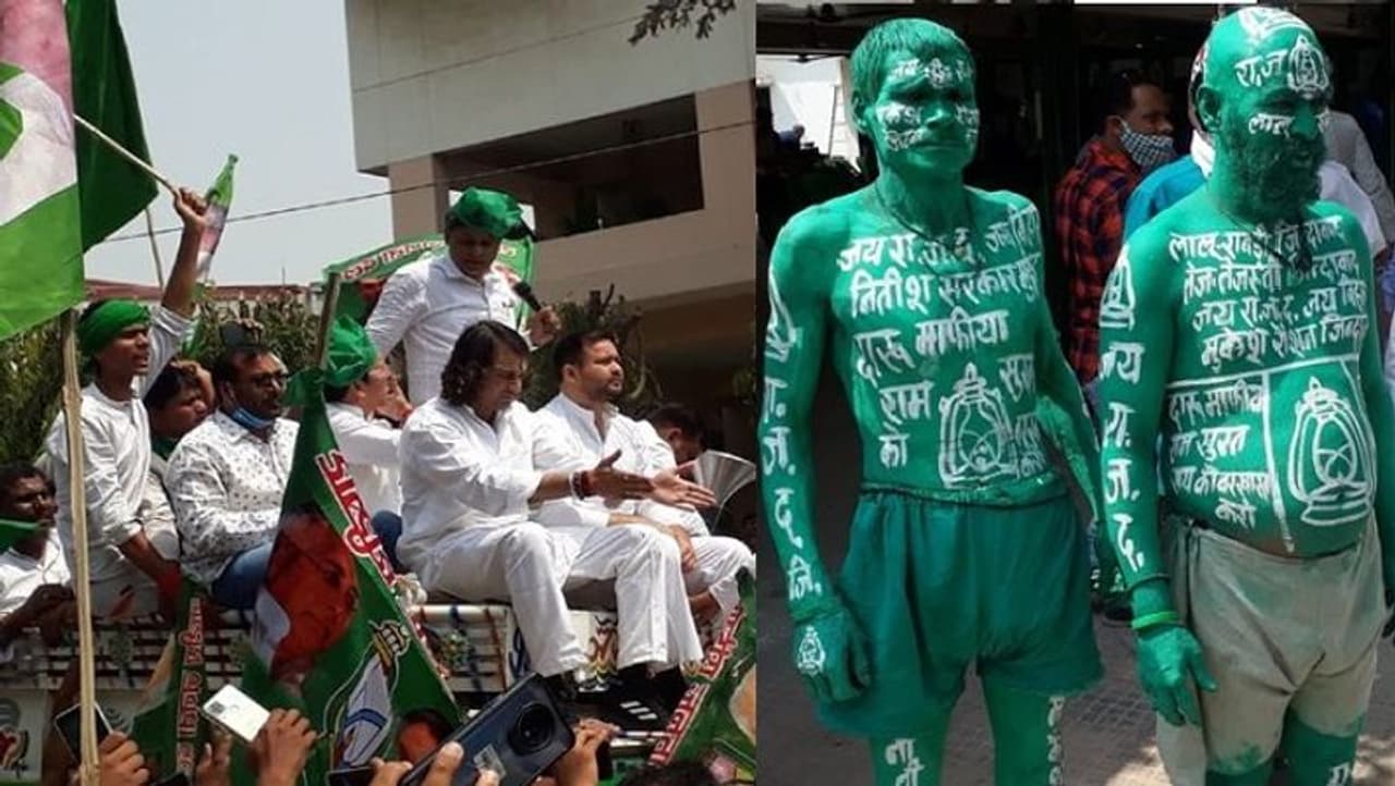 प्रदर्शनकारियों में आरजेडी कार्यकर्ताओं में काफी उत्साह भी देखने को मिला। कुछ इस तरह से कार्यकर्ता पूरे शरीर को पेंट कराए नजर आए।