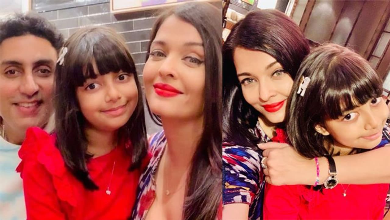 आंखों में काजल, रेड लिपस्टिक और खुले बालों में पति और बेटी के साथ स्माइल करती दिखी ऐश्वर्या राय
