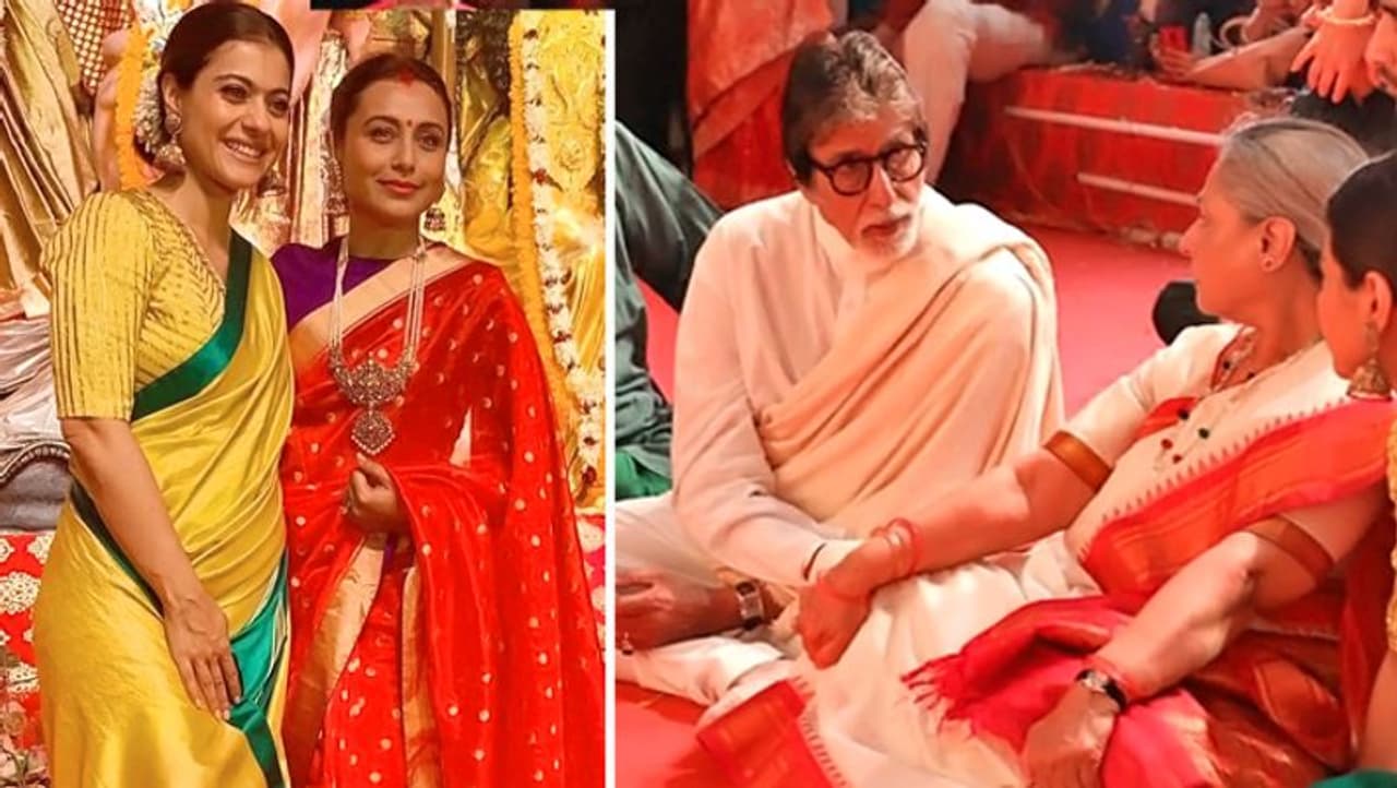 दुर्गा पूजा पांडाल में अमिताभ, जया बच्चन, काजोल, शरबानी मुखर्जी और टीवी एक्ट्रेस सुमोना चक्रवर्ती।