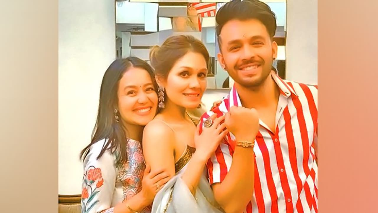 नेहा कक्कड़ ने भाई टोनी और बड़ी बहन सोनू कक्कड़ के साथ ये फोटो शेयर कर राखी की बधाई दी।