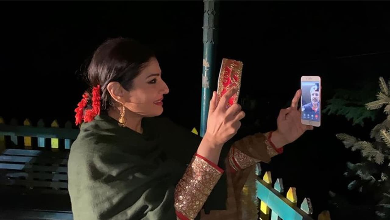 फेमस बॉलीवुड एक्ट्रेस रवीना टंडन ने फिल्म डिस्ट्रिब्यूटर अनिल थड़ानी से 22 फरवरी 2004 में शादी की थी। तस्वीर 2020 की है जब रवीना डलहौजी में अपनी डेब्यू वेब सीरीज 'अरणयक' में बिजी थीं। इस दौरान उन्होंने वीडियो कॉल के जरिए ही अपना करवा चौथ मनाया था।