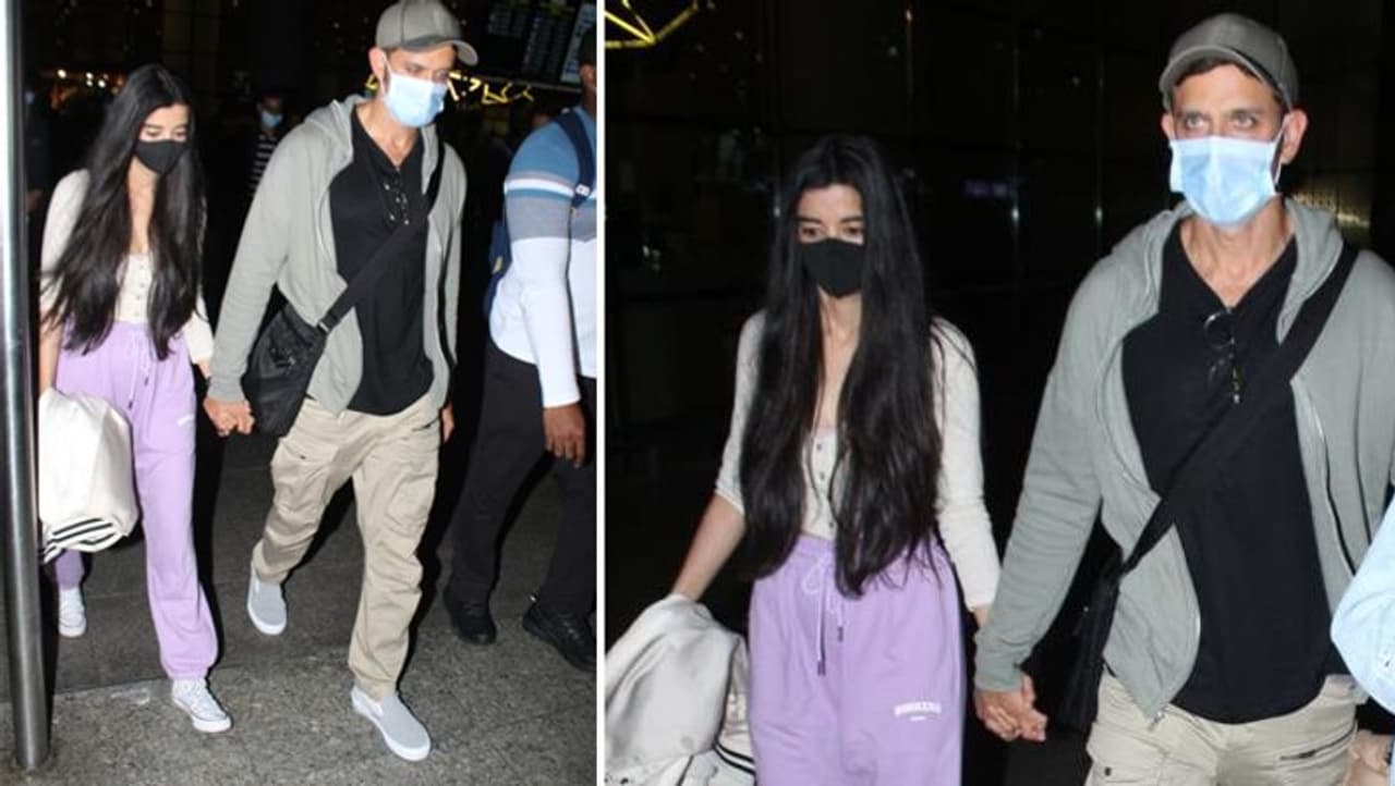 इस दौरान ऋतिक रोशन ने अपनी ब्लैक टी-शर्ट उर लाइट ब्राउन ट्राउजर के साथ ग्रे कलर का हुडी पहना हुआ और कैप भी लगाया हुआ था। वहीं, सबा आजाद व्हाइट टी-शर्ट और लैवेंडर ट्राउजर में काफी स्टनिंग लग रही थीं। दोनों एक-दूसरे के प्यार में डूबे नज़र आए।
