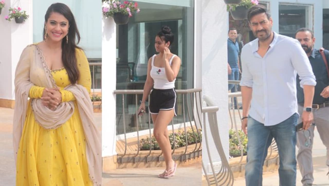 मुंबई. शनिवार को अजय देवगन अपनी अपकमिंग फिल्म तानाजी का प्रमोशन करते नजर आए। प्रमोशन के दौरान पत्नी काजोल और बेटी न्यासा भी साथ थे। इस मौके पर काजोल यलो कलर के अनारकली सूट में बेहद खूबसूरत नजर आईं। काजोल ने फोटोग्राफर्स को जमकर पोज दिए। वहीं, अजय देवगन जीन्स और लाइट ब्लू कलर की शर्ट में स्पॉट हुए। फिल्म का प्रमोशन करते अजय और काजोल की फोटोज सोशल मीडिया पर वायरल हो रही है। एक फोटो में अजय देवगन धूप की वजह से थोड़े परेशान नजर आए। फिल्म प्रमोशन के दौरान अजय-काजोल के साथ उनकी बेटी न्यासा बेहद फॉर्मल ड्रेस में दिखीं।
