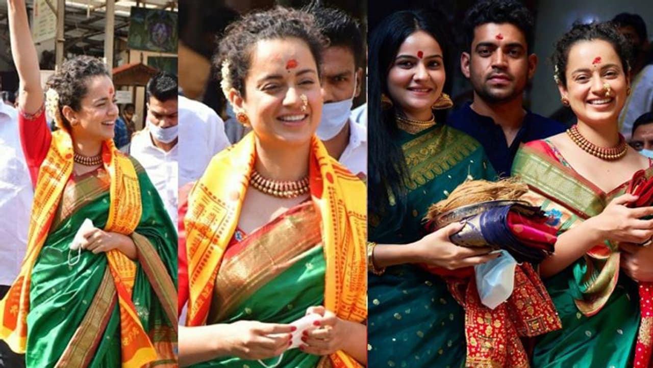 - हरी साड़ी, बालों में गजरा और बड़ी नथ पहने बप्पा के दर्शन करने पहुंची कंगना, भाई-भाभी भी थे साथ