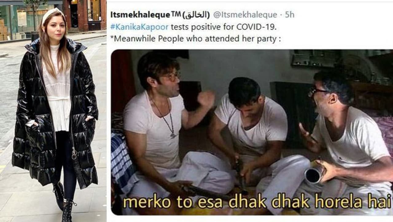 पार्टी में शामिल हुए लोगों के नजरिए से एक मीम बनाया गया जिसमें वे कनिका के संक्रमित होने की खबर जानने के बाद फिल्म 'हेरा-फेरी' का डायलॉग शेयर करके कहते हैं, 'मेरे को तो ऐसा धक-धक हो रहा है।'