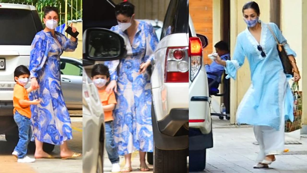 मुंबई। कोरोना वायरस का कहर पूरे महाराष्ट्र समेत मुंबई में भी बढ़ता ही जा रहा है। बच्चन फैमिली के संक्रमित होने के बाद से बॉलीवुड सेलेब्स काफी एहतियात बरत रहे हैं। हाल ही में करीना कपूर अपने 4 साल के बेटे तैमूर के साथ स्पॉट हुईं। इस दौरान करीना ने तैमूर का हाथ पकड़ रखा था और दोनों मास्क पहने नजर आए। इससे पहले बच्चे को घुमाने की वजह से करीना और सैफ को सोशल मीडिया पर खूब ट्रोल किया गया था। वहीं मलाइका अरोड़ा भी घर के बाहर स्पॉट की गईं। इस दौरान मलाइका सूट में नजर आईं।