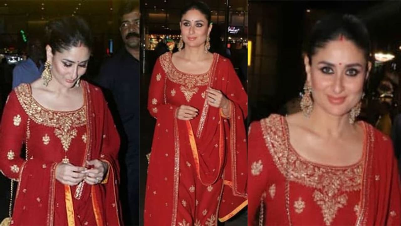 मांग में सिंदूर, बड़े बड़े झुमके और सुर्ख लाल रंग के सलवार सूट में खूबसूरत दिखीं करीना कपूर