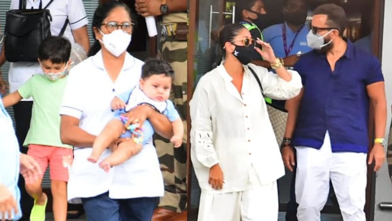 मुंबई। करीना कपूर (Kareena Kapoor) पिछले कुछ दिनों से पति सैफ अली खान (Saif Ali Khan) और दोनों बेटों तैमूर (Taimur) और जहांगीर (Jehangir) के साथ मालदीव में वेकेशन एन्जॉय कर रही थीं। रविवार को करीना मुंबई लौट आईं। इस दौरान उनकी फैमिली कलीना एयरपोर्ट के बाहर स्पॉट हुई। बाहर निकलते वक्त करीना का छोटा बेटा जहांगीर जहां नैनी की गोद में दिखा तो वहीं तैमूर ग्रीन टी-शर्ट और पिंक पैंट में उनके पीछे नजर आए। इस दौरान तैमूर ने मास्क लगा रखा था। वहीं ऐश्वर्या राय भी बेटी आराध्या के साथ एयरपोर्ट के बाहर नजर आईं। इस दौरान मां-बेटी ने मास्क से अपने चेहरे को कवर कर रखा था।