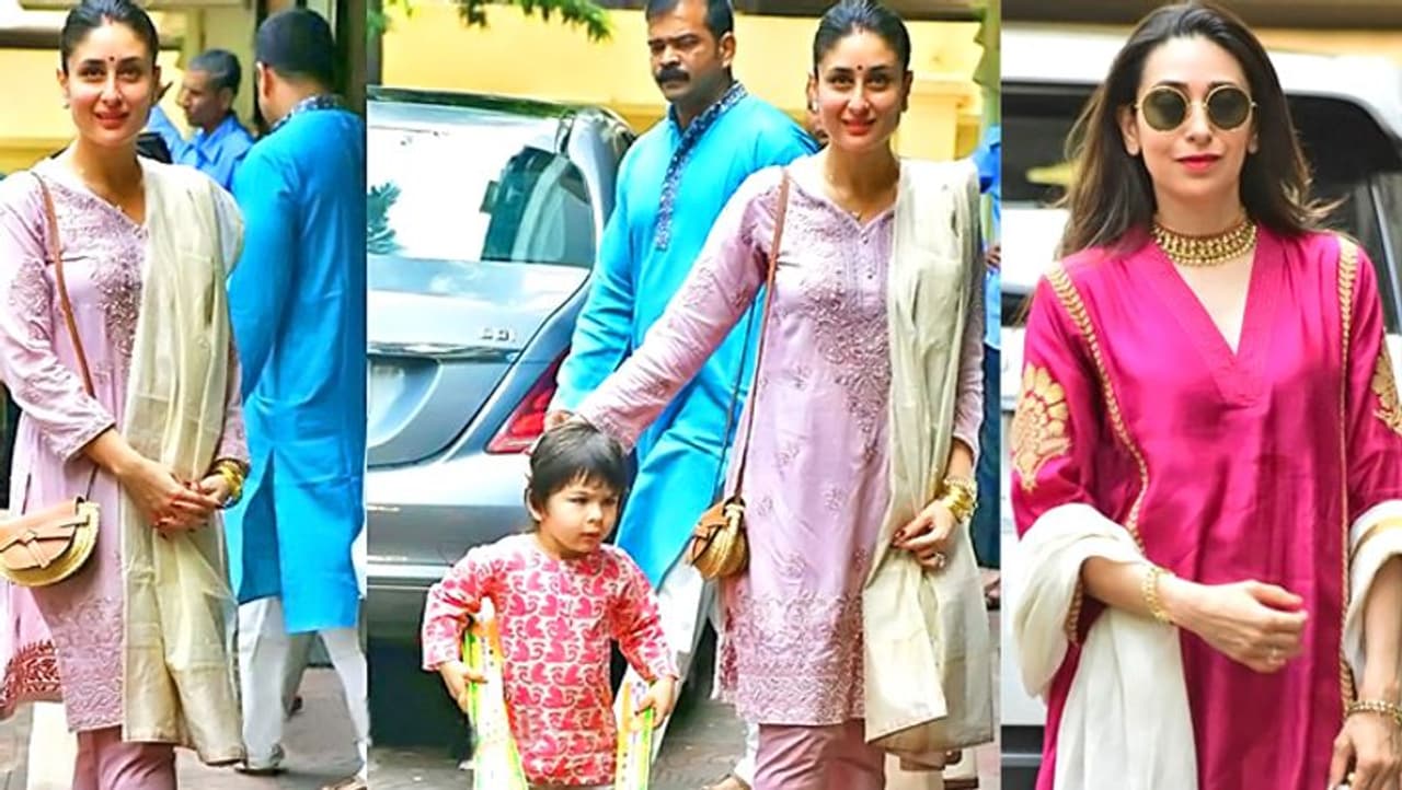 दिवाली पर बहन करिश्मा के साथ करीना कपूर ने की पूजा। तैमूर भी ट्रेडिशनल लुक में आए नजर।