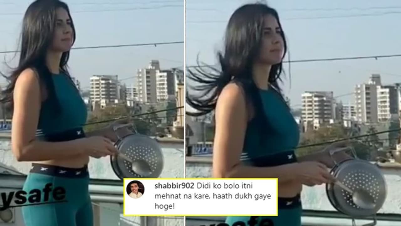 छत पर कैटरीना को बर्तन बजाते देख भड़के लोग, एक बोला दीदी को बोलो इतनी मेहनत ना करें