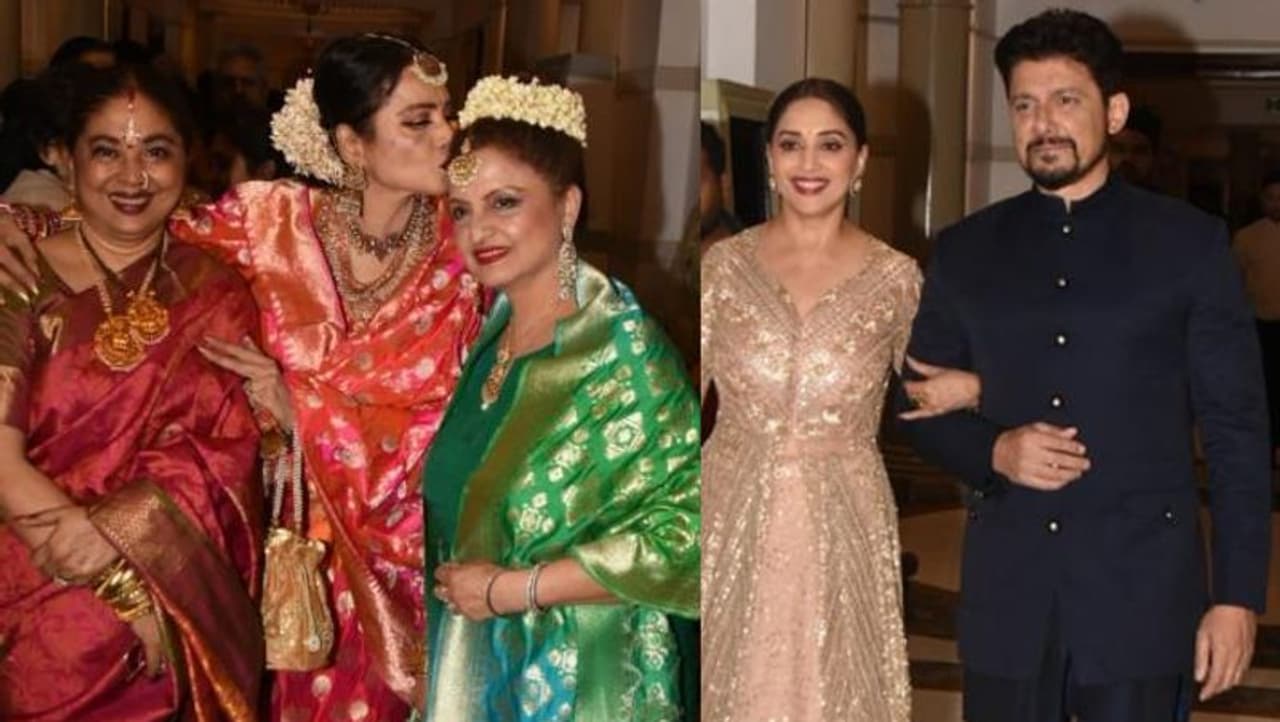 वहीं, माधुरी दीक्षित पति श्रीराम नेने के हाथों मं हाथ डाले रिसेप्शन में नजर आईं। उस मौके पर माधुरी ने क्रीम गोल्डन कलर का गाउन कैरी किया। सिम्पल मेकअप में भी माधुरी बेहद खूबसूरत नजर आ रही थी।