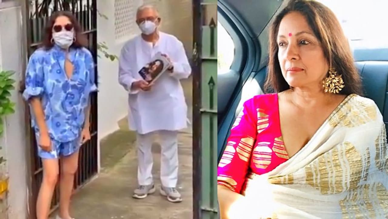 नीना गुप्ता ने गुलजार साहब के घर के गेट के पास फोटोग्राफर को देखते हुए कहा- मैं अपनी किताब देने आई हूं। मुझे उम्मीद है कि वो पढ़ लेंगे। इसके बाद नीना ने गेट के पास ही खड़े गुलजार साहब से पूछा- 'पढ़ोगे?' गुलजार साहब ने फिर नीना गुप्ता के साथ पोज दिए।