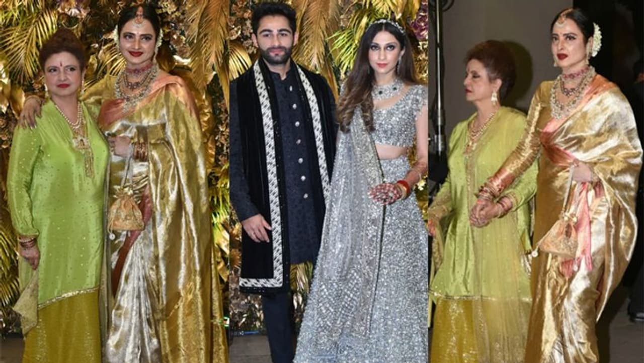 ये पहली बार जब रेखा किसी फंक्शन में अपनी छोटी बहन राधा सैयद का हाथ थामे पहुंची थी। रेखा के अलावा रिसेप्शन में कई सेलेब्स पहुंचे। रेखा ने एक्ट्रेस नीलम के साथ भी खूब पोज दिए। वेडिंग रिसेप्शन में सोनम कपूर, अनिल कपूर, करीना कपूर, करिश्मा कपूर, सुनीता कपूर, कियारा अडवाणी, सिद्धार्थ मल्होत्रा, तारा सुतारिया, आलिया भट्ट, रणबीर कपूर, नीतू कपूर, चंकी पांडे, अनन्या पांडे, भावना पांडे, सोहा अली खान, कुणाल खेमू, करन जौहर, मनीष मल्होत्रा, संजय कपूर, शनाया कपूर, महीप कपूर सहित कई सेलेब्स शामिल हुए।