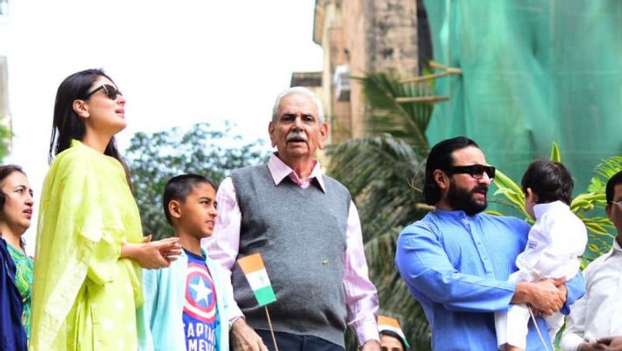 वहीं, सैफ अली खान ब्लू कुर्ता में जबकि तैमूर व्हाइट कुर्ता में नजर आए थे। तैमर खान ने अपने पापा के साथ झंडा फहराते दिखाई दिए थे।