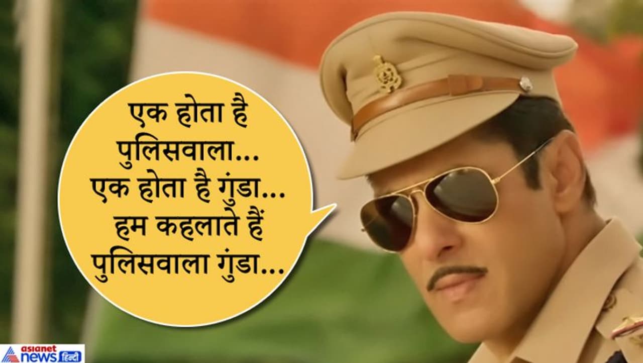 मुंबई। सलमान खान की मोस्टअवेटेड मूवी 'दबंग 3' का ट्रेलर बुधवार शाम को मुंबई के जुहू स्थित पीवीआर में लॉन्च किया गया। इस बार फिल्म के ट्रेलर में सलमान के डायलॉग्स भी पहली दो फिल्मों से ज्यादा बेहतरीन हैं। ट्रेलर में ज्यादातर डायलॉग सलमान ने ही बोले हैं मसलन - एक होता है पुलिस वाला, एक होता है गुंडा, हम कहलाते हैं पुलिसवाला गुंडा। एक और डायलॉग है- कोई दबंग पैदा नहीं होता है उसके पीछे एक कहानी जरूर होती है। इसी तरह फिल्म में और भी कई डायलॉग हैं, जिन्हें सुनकर दर्शक ताली बजाए बिना नहीं रह सकेंगे। हम बता रहें हैं फिल्म के कुछ फेमस डायलॉग।
