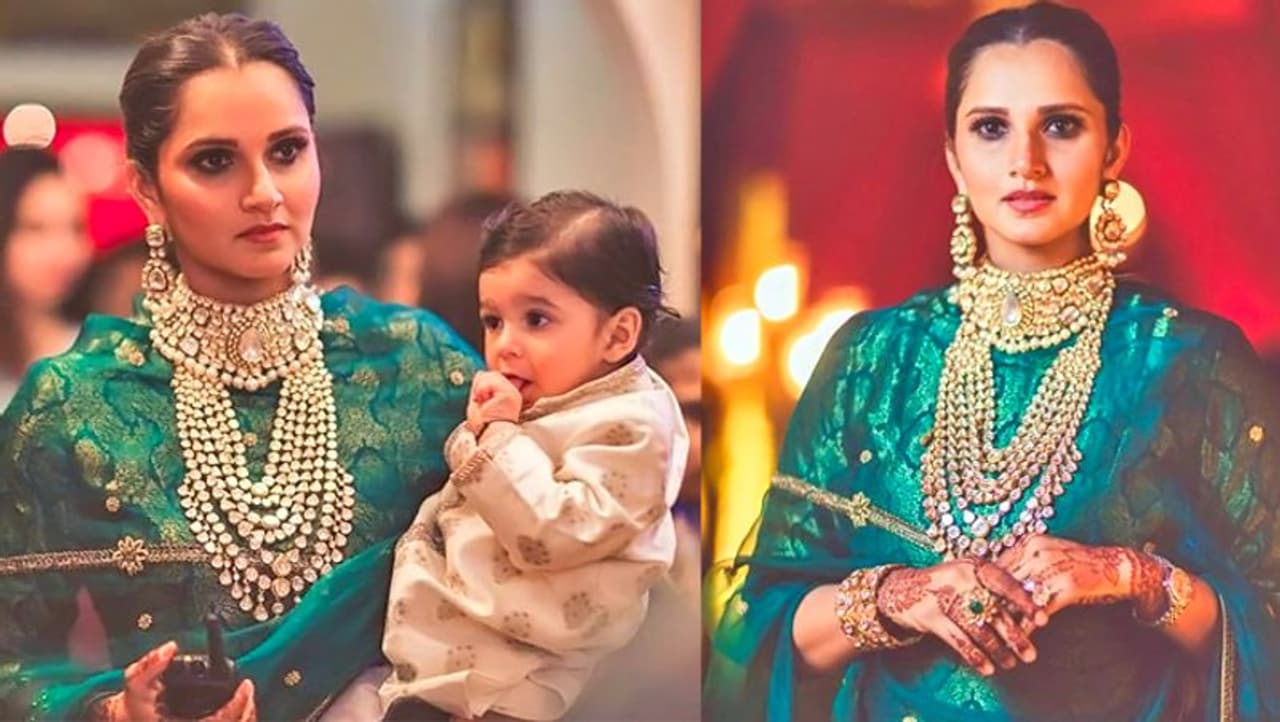 बहन की शादी में पीकॉक ग्रीन शरारा में बेहद खूबसूरत दिखीं सानिया मिर्जा।