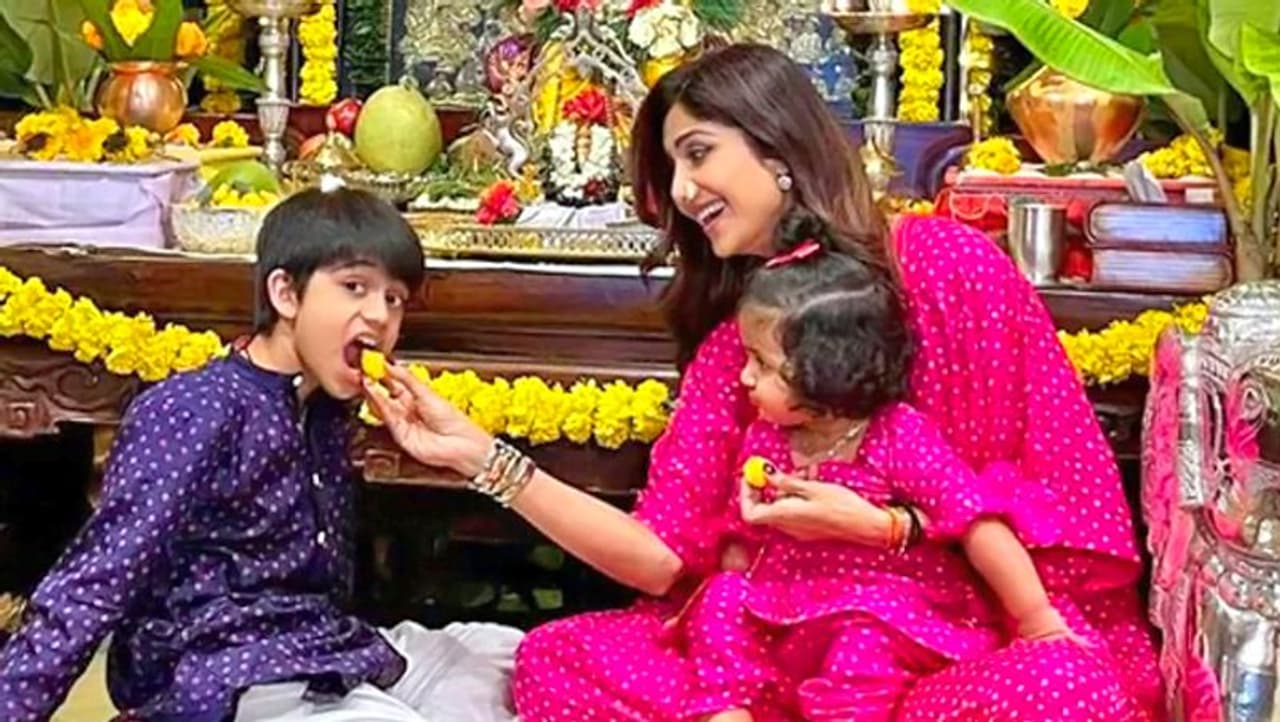 शिल्पा शेट्टी की बेटी ने की मां जगदम्बा की आरती, बेटा भी मंत्र पढ़ता दिखा लेकिन नहीं नजर आए पति राज कुंद्रा