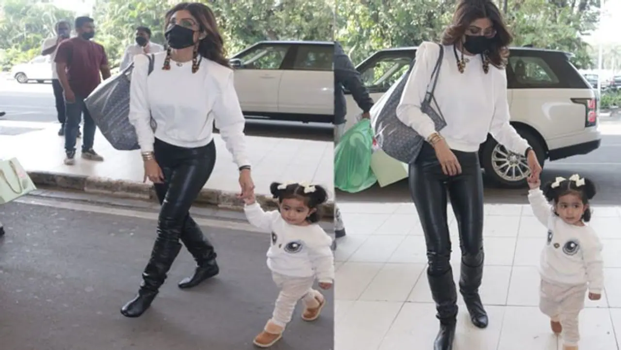 Shilpa Shetty अपनी बेटी के साथ एयरपोर्ट पर हुई स्पॉट, समीषा की क्यूटनेस ने जीत लिया लोगों का दिल
