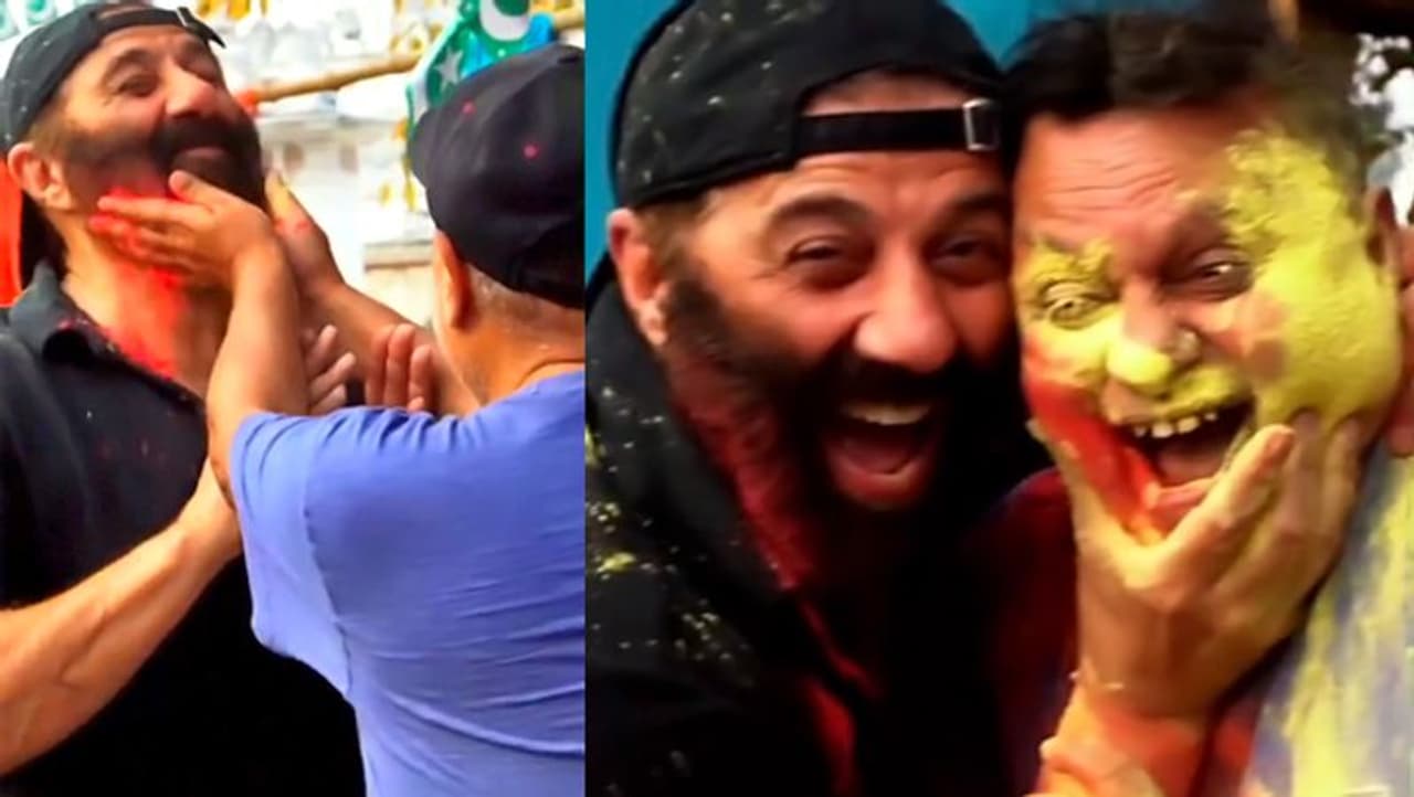 लखनऊ में गदर 2 के सेट पर डायरेक्टर अनिल शर्मा के चेहरे पर गुलाल मलकर सनी देओल ने कुछ ऐसा कर दिया हाल। बाद में अनिल शर्मा ने भी सनी को नहीं बख्शा।