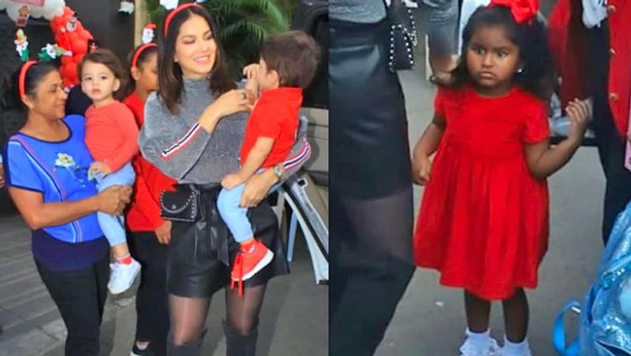 बेटी का हाथ थामे और बेटे को गोद में लिए क्रिसमस पार्टी में पहुंचीं सनी लियोनी