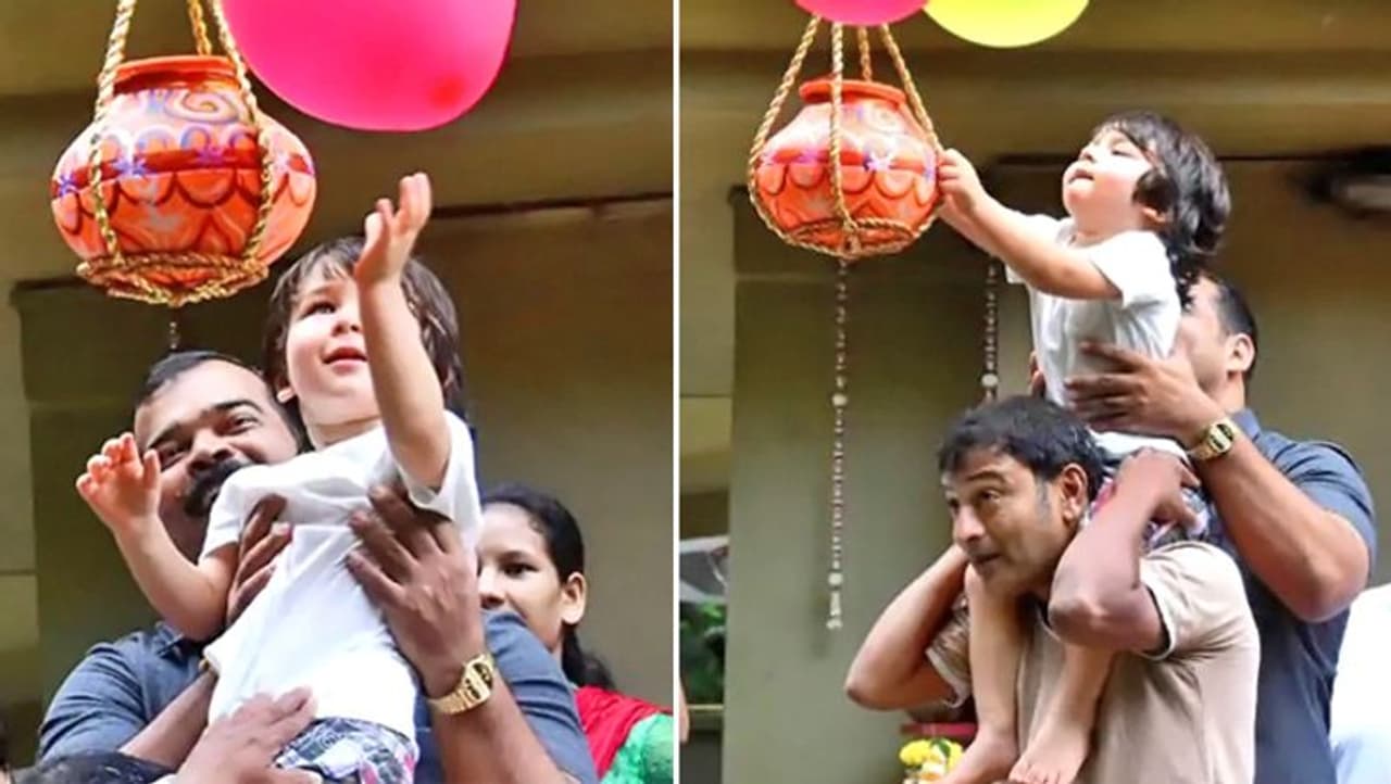तैमूर को एक शख्स ने अपने कंधे पर बिठाया और इसके बाद उन्होंने गोविंदा बनकर दही हांडी फोड़ी।